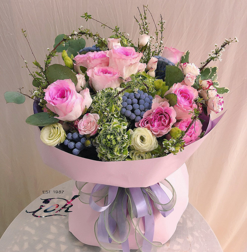 【BO-024】粉玫瑰(8枝) + 襯花